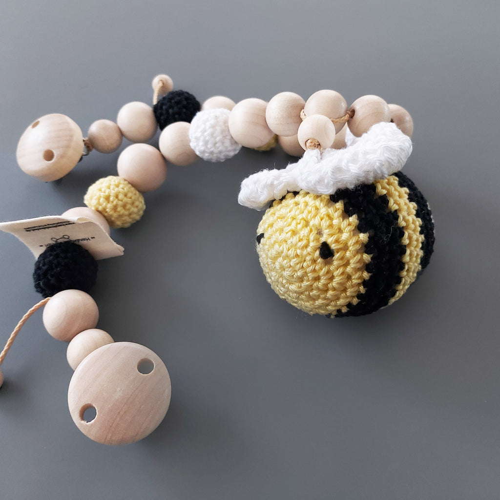 Niedliche Kinderwagenkette mit Biene und Rassel – Handgemachtes Babyspielzeug, liebevolles Geschenk zur Geburt