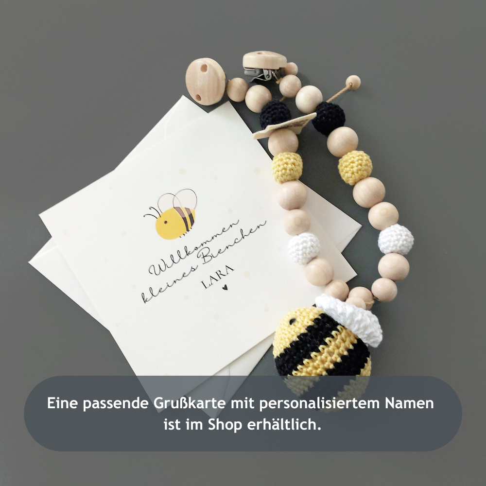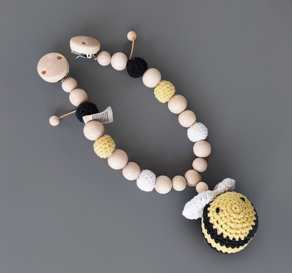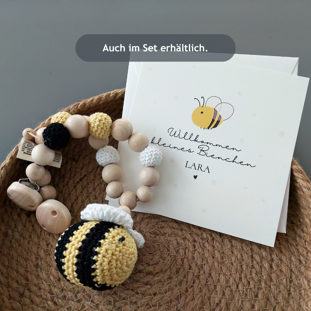 Kinderwagenkette mit Biene und Rassel – Geschenk zur Geburt