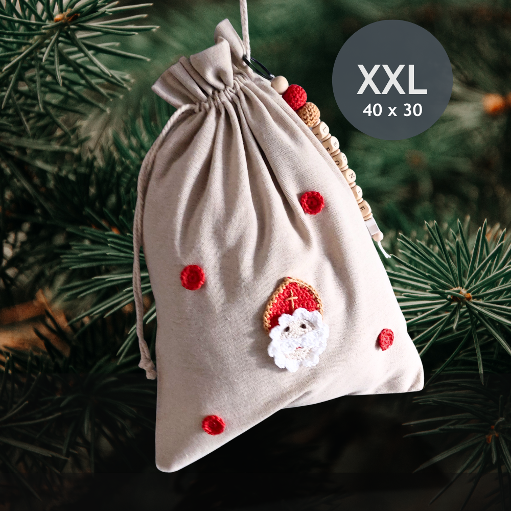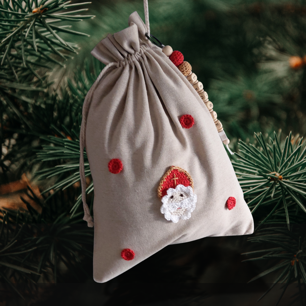 Dieses handgemachte Nikolaussäckchen bringt Kinderaugen zum Strahlen. Es ist süß, nachhaltig und wiederverwendbar – und wird mit deinem Wunschnamen personalisiert. Erhältlich in drei Größen, perfekt für kleine bis große Nikolausgeschenke.